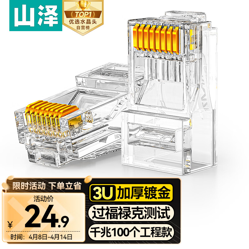 山泽 超五类网线e电脑千兆网络连接器 RJ45工程级8P8C超5类镀金水晶头 100个/盒 WL-5100