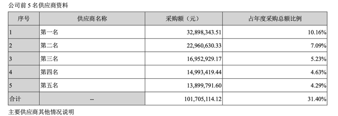 但秋田微2020年年报披露,未具名的前五大供应商的采购金额分别为2418.71万元、1846.22万元、1703.82万元、1435.27万元和1429.39万元。